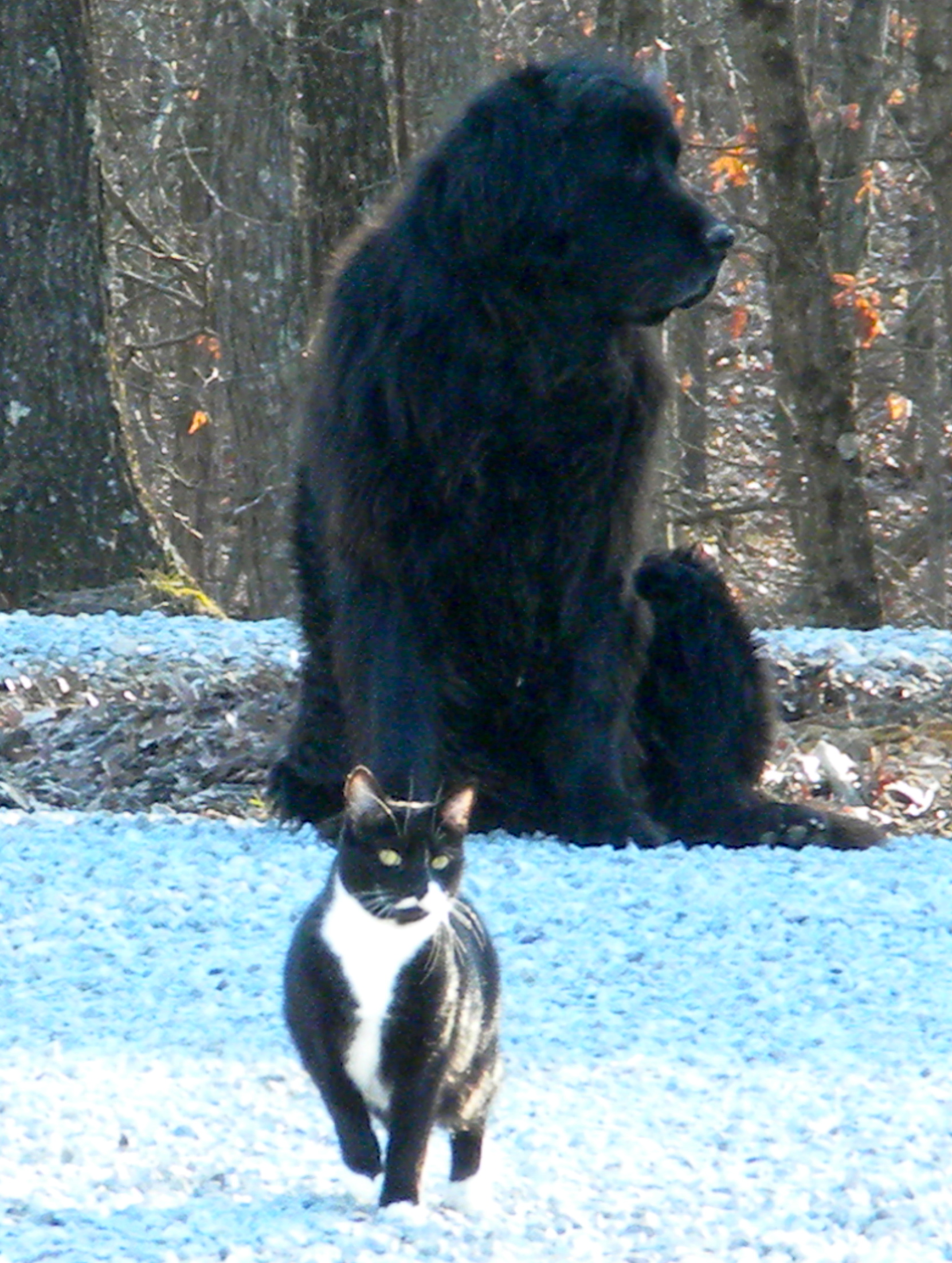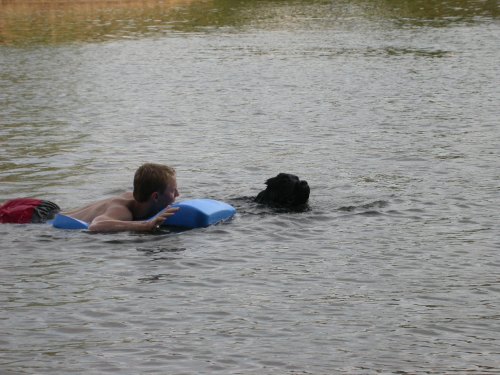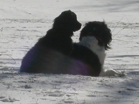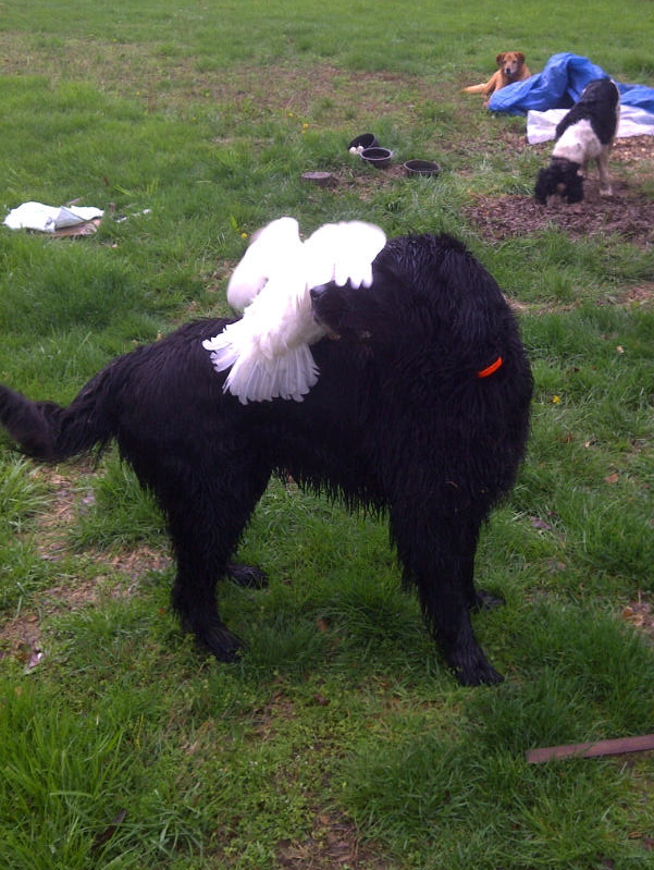 Ol’ Simon ( Newfoundland) isn’t doin’ too well these days. We went to the vet yesterday for whiny, labored breathing, distended tummy, and spitting up regularly. The prognosis is not good. Without testing the Dr. believes it is either A) congestive heart failure or B) cancerous mass. He is holding about 3 to 5 gallons of fluid in his abdomen, but he is so big and hairy that, yeah, we noticed change but not tons since we are with him all the time. It is definitely time. He is almost 10. My oldest son visits about once a month, and the last two times he has come he really noticed something wrong.