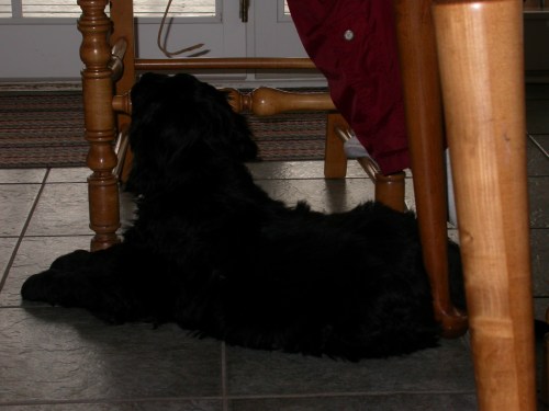 Simon has been a great dog in many regards except for the little fact he likes to beat up our other animals. I have had a real problem with that. Messes with my serenity. I’m sure the other dogs have had a few words for him too. He loves us to pieces. He is an awesome guard dog. He obeys very well (except when he is attacking). He doesn’t wander. He is as insecure as you can imagine. He has a hard time having fun because he is too busy monitoring the who that is getting more attention than him. But, hey, who’s perfect?