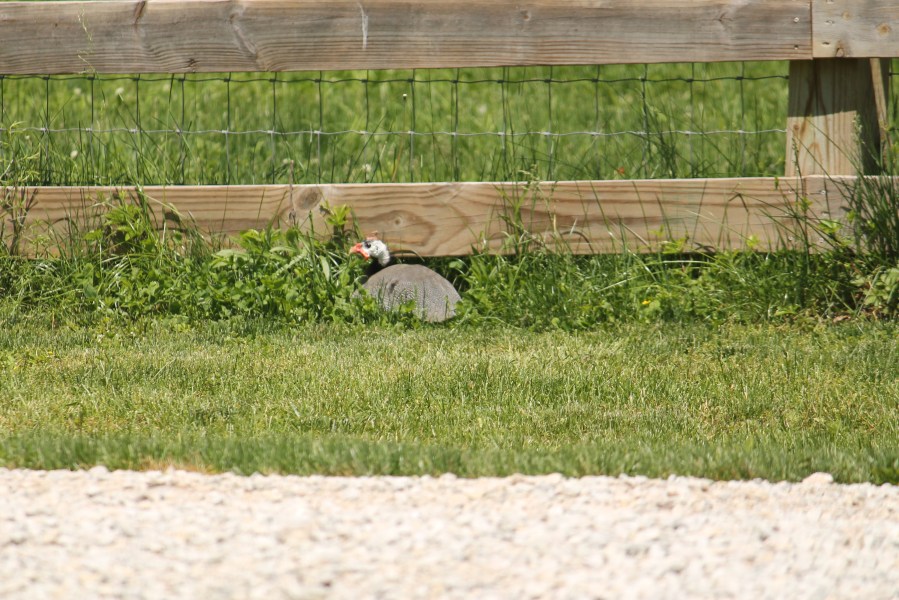 Guinea sitting on her eggs.
