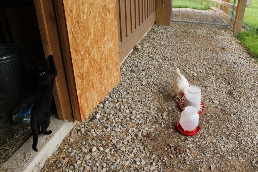 Kitty scratching her claws on barn getting ready for…..
