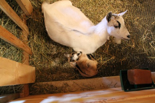 On a serious note, my heart was overwhelmed at the sight of this thing. How does this happen? This goat is as perfect as you can imagine. And all of its instincts are in working order at the get go. As hard as I have tried (but proof has done me in), I can not deny there is a loving God in the midst of us working miracles over and over in front of my eyes. This is truly a miracle.
