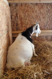 Saturday night as I prepared them for beddy bye, I thought that maybe it would be a good idea to separate the three goats just in case one of the does would decide to have a baby. I have never thought to do this. This comes from farmer girl who wasn’t/isn’t totally sure they are “with child”. Lilly’s udders looked big to me. But what do I know.