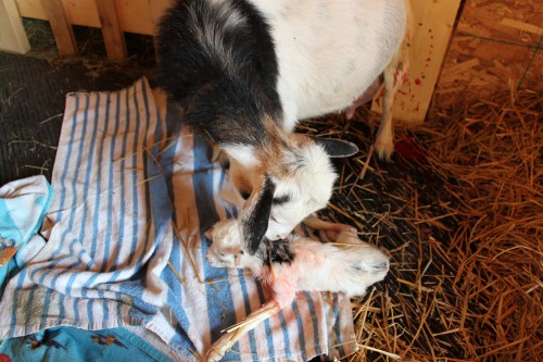 When I got home, she had been laboring for about an hour and was glad that I was there. She wanted me very close which I was happy to oblige. Mind you, I have never done this sort of thing. While I have read a lot about goat delivery, I could not have predicted or known how to handle what was to come.